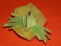 Απλώνεις το αραχνοΰφαντο ύφασμα πάνω στην τσόχα συμμετρικά, γυρίζεις το περίσσιο από πίσω και απλώνεις με το πινέλο την ατλακόλ να κολλήσει (βουτάς και στο νεράκι, να απλωθεί πιο εύκολα, αν χρειαστεί). Προσοχή, δεν τεντώνεις το ύφασμα πολύ πάνω στην τσόχα - θέλεις να έχει "αέρα" για να κρεμαστούν ευκολότερα τα μπιχλιμπιδάκια σου.
